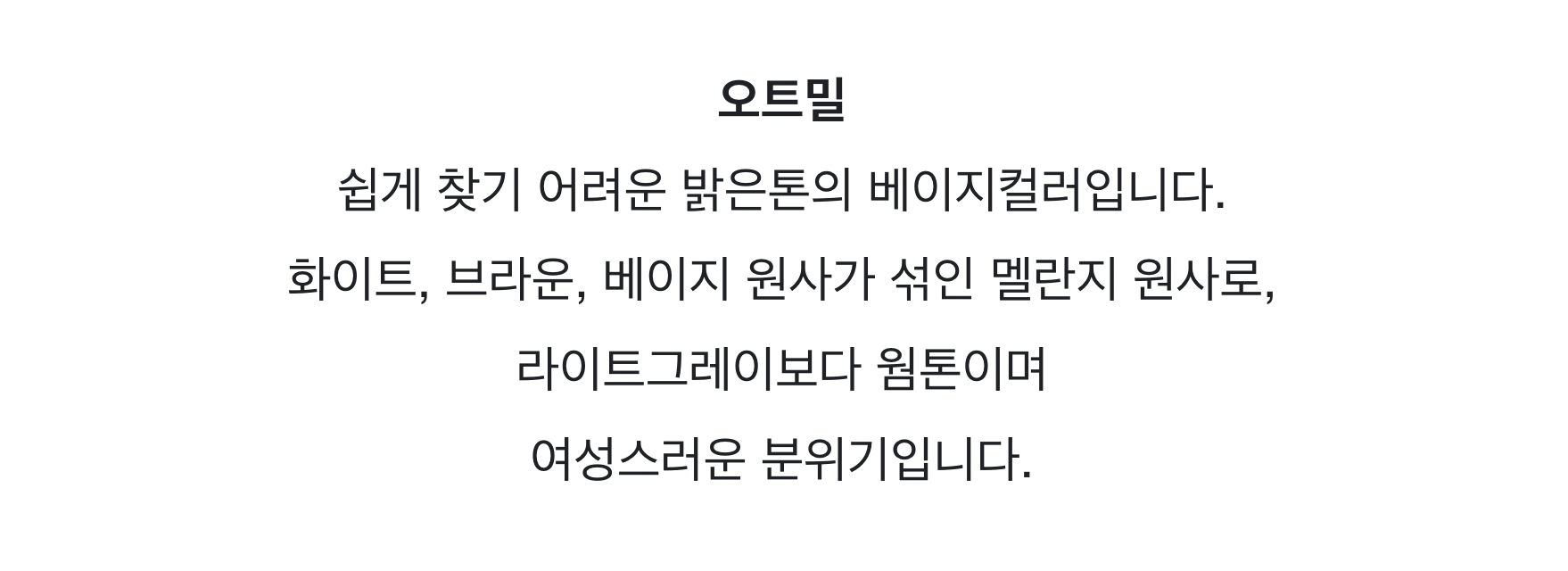 - 미세한 올트임, 멜란지컬러의 패턴차이, 작은 잡사, 고지한 허용범위 내 사이즈차이, 주관적인 기준에 의한 사유 등은 불량 사유에 해당 되지 않습니다.
