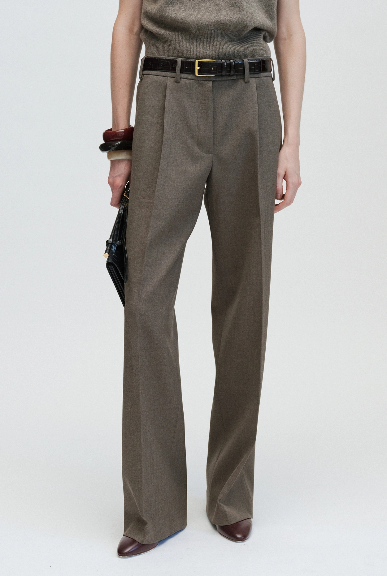 Wide Fit Trouser in Wool_Brown and Black