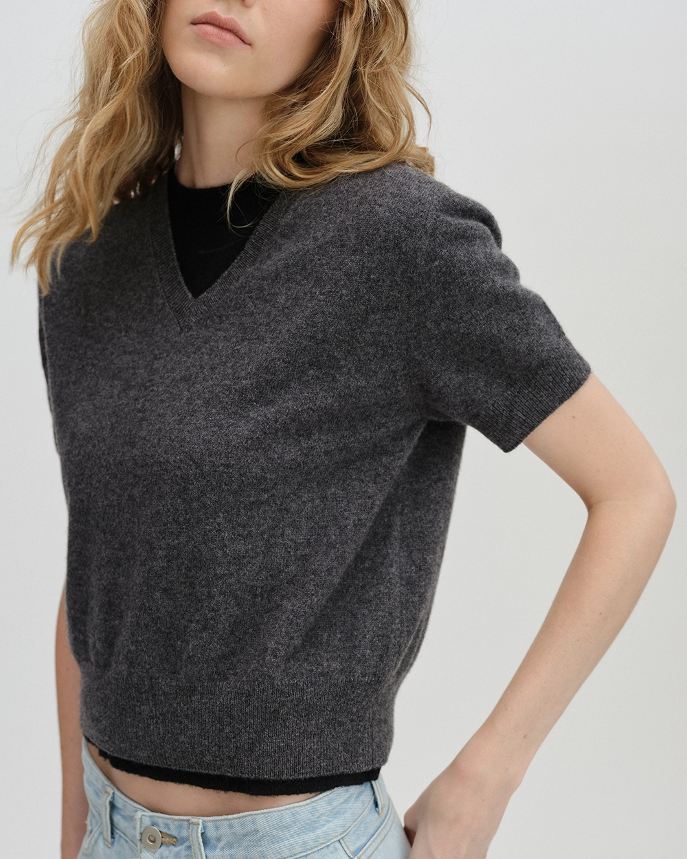 [2nd_11/7 입고] 100% Pure Cashmere V Neck Sweater_Charcoal grey
