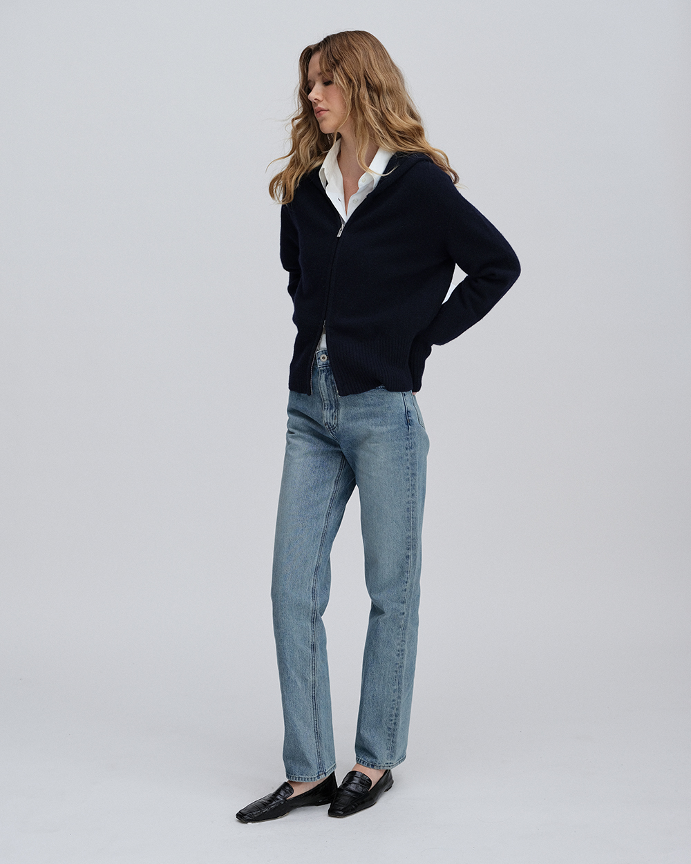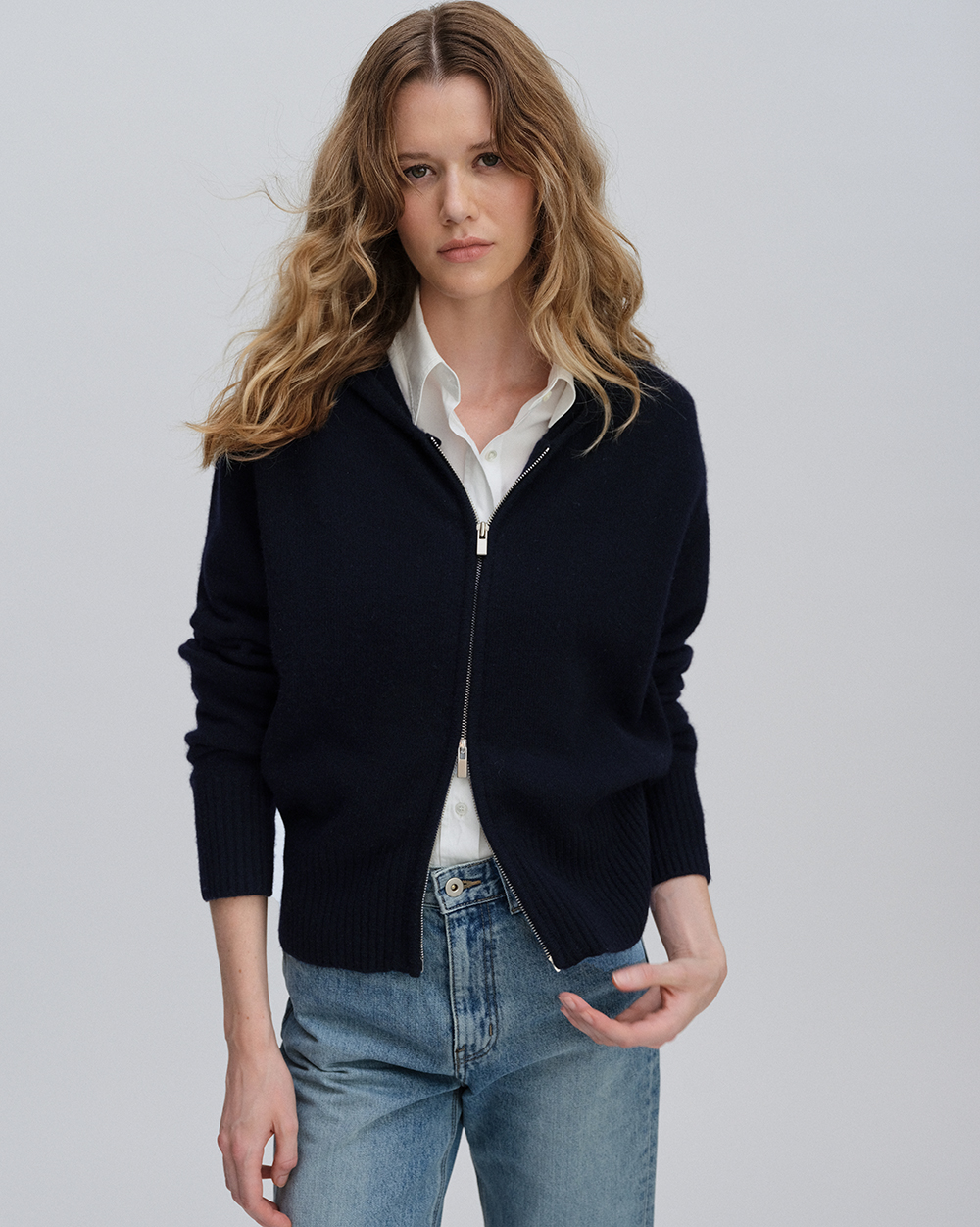 [6th] Hoodie Cardigan in Cashmere and Tasmania Wool_Navy