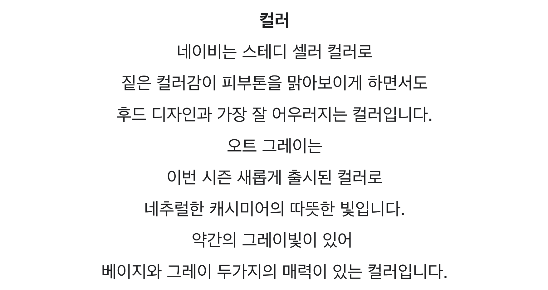 - 미세한 올트임, 멜란지컬러의 패턴차이, 작은 잡사, 고지한 허용범위 내 사이즈차이, 주관적인 기준에 의한 사유 등은 불량 사유에 해당 되지 않습니다.
