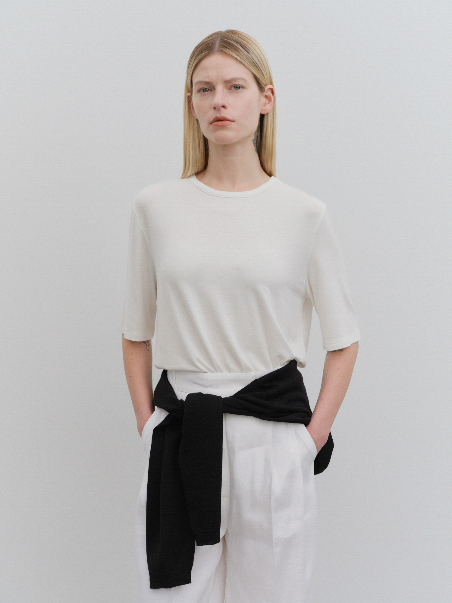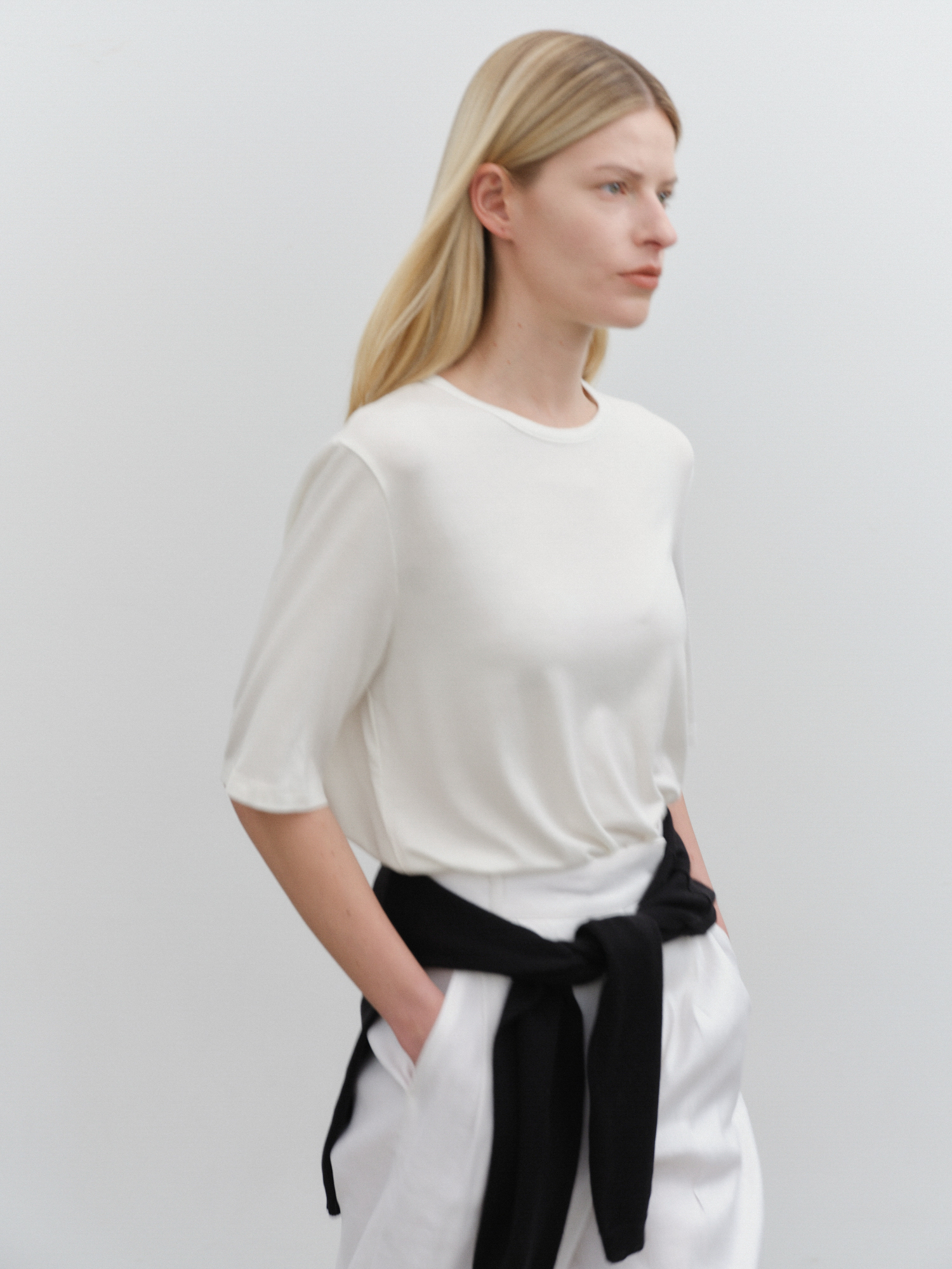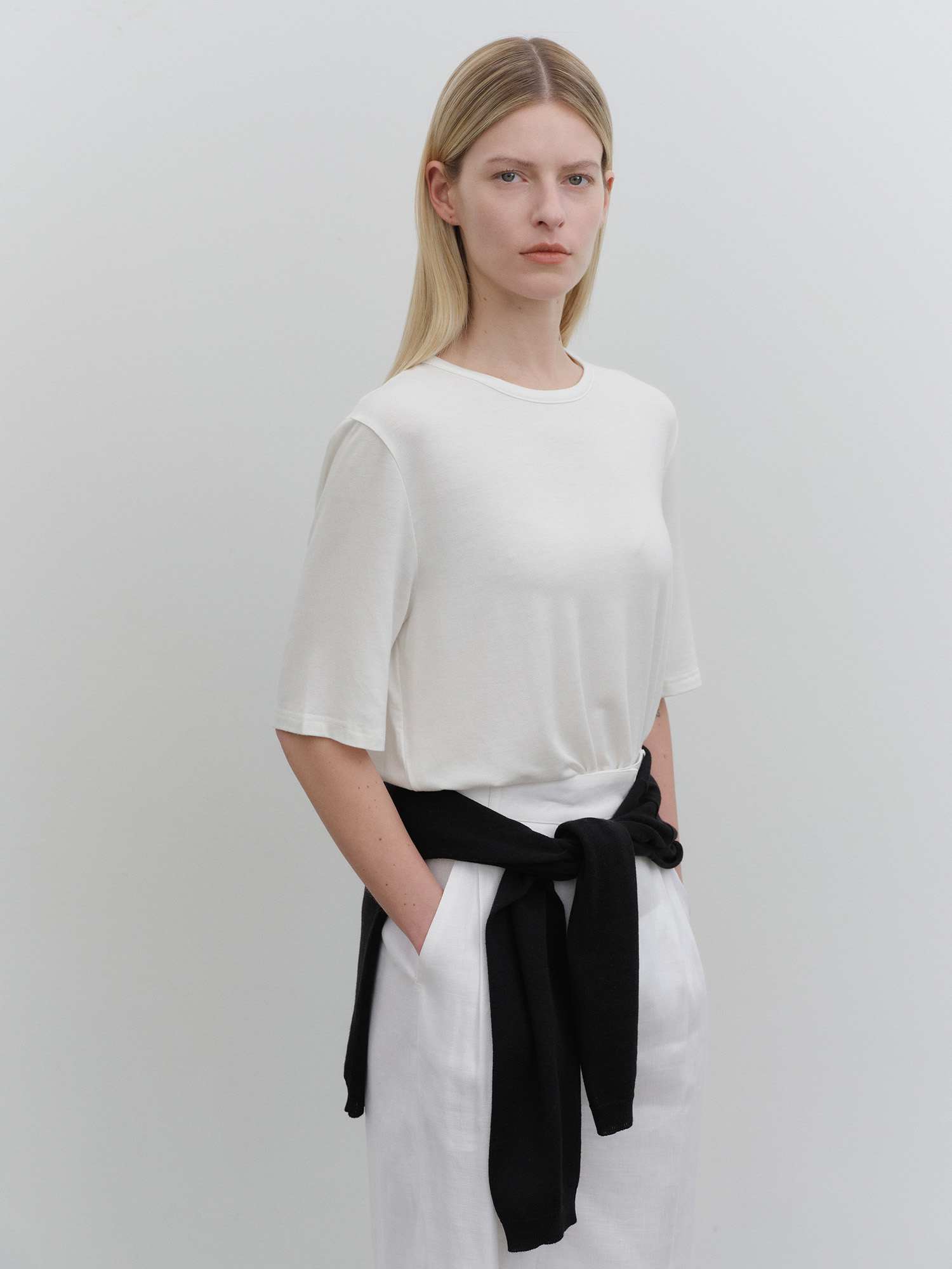 - 늘어짐 방지를 위한 넥라인 이중박음질 처리