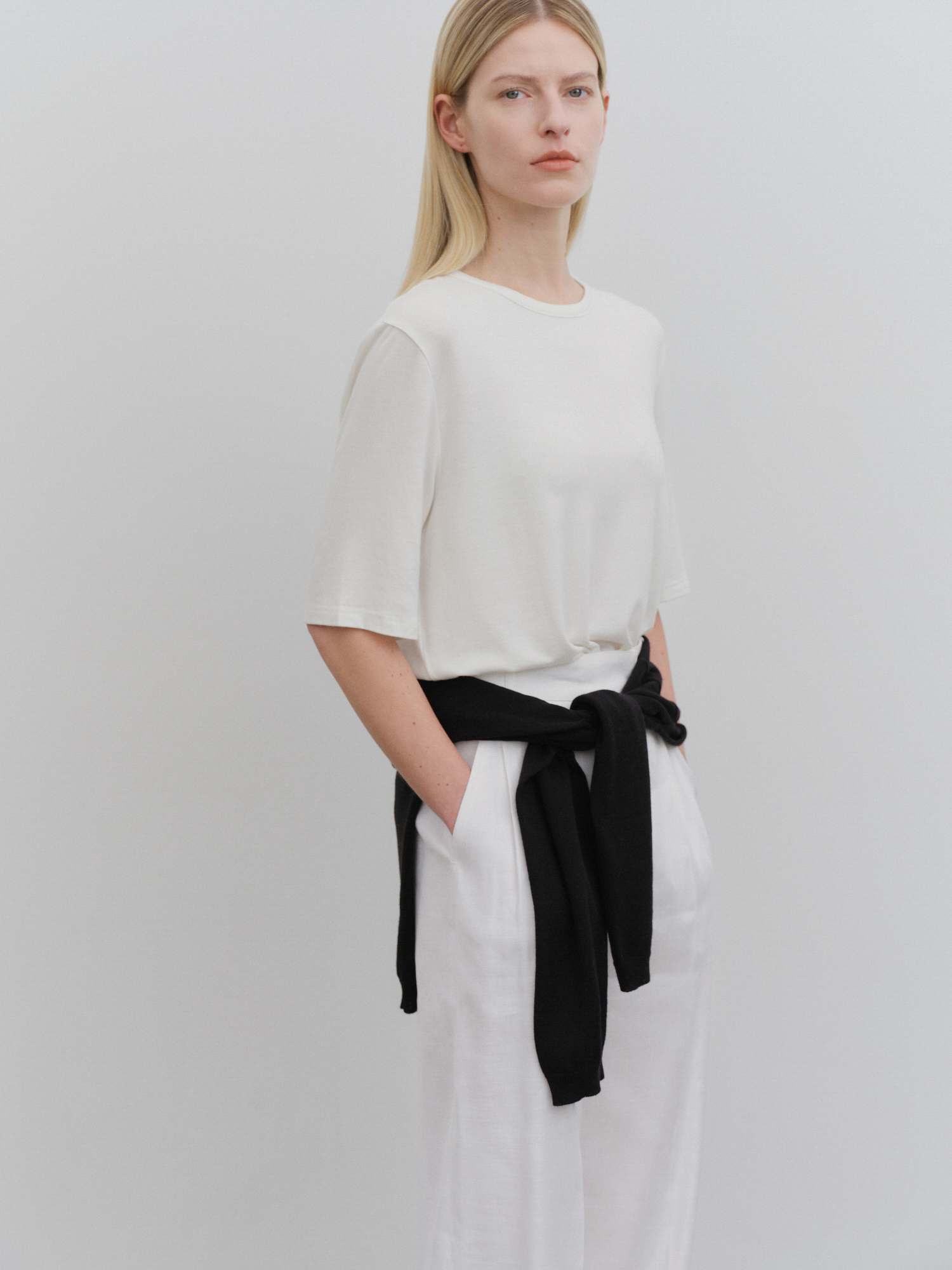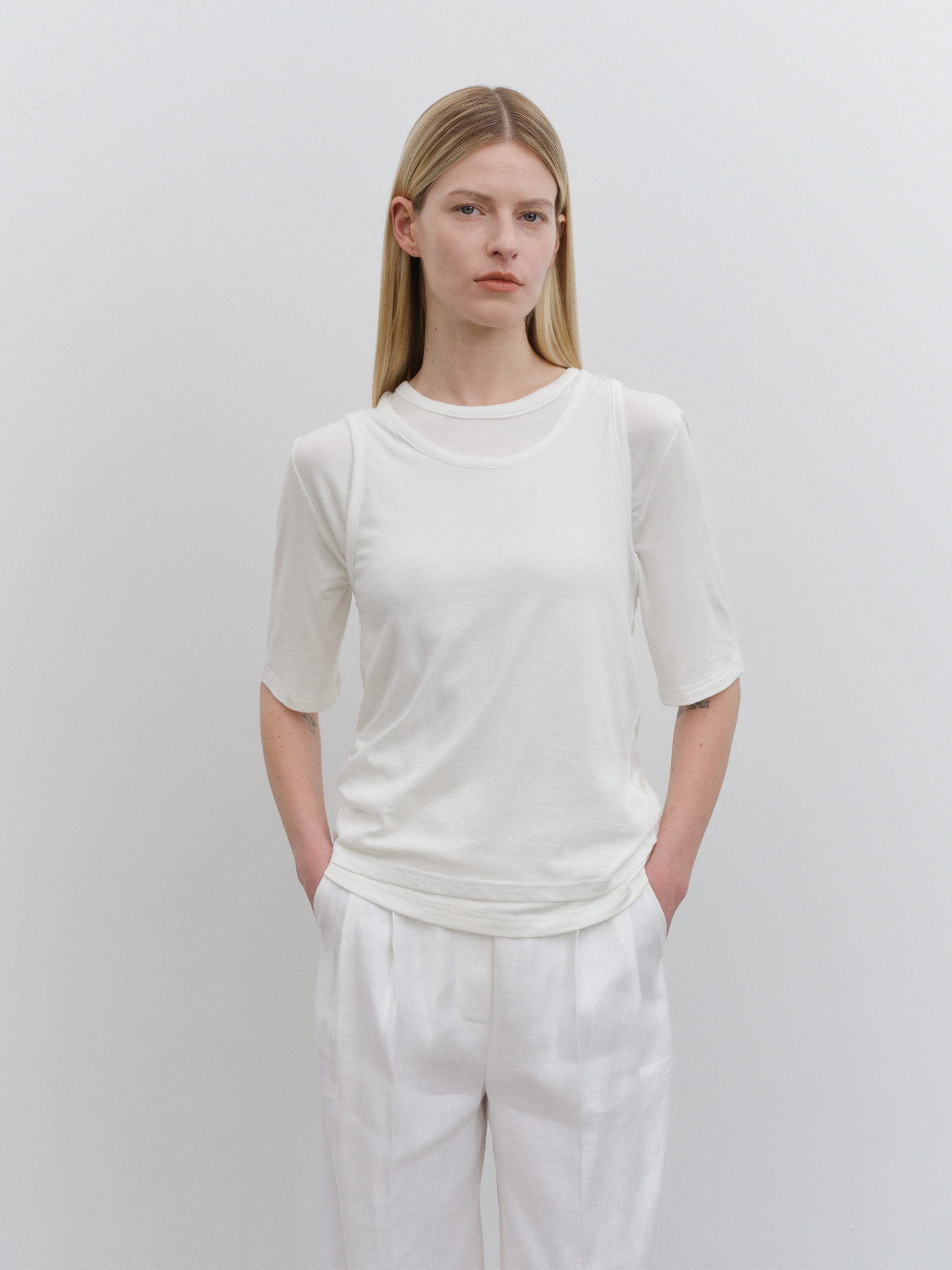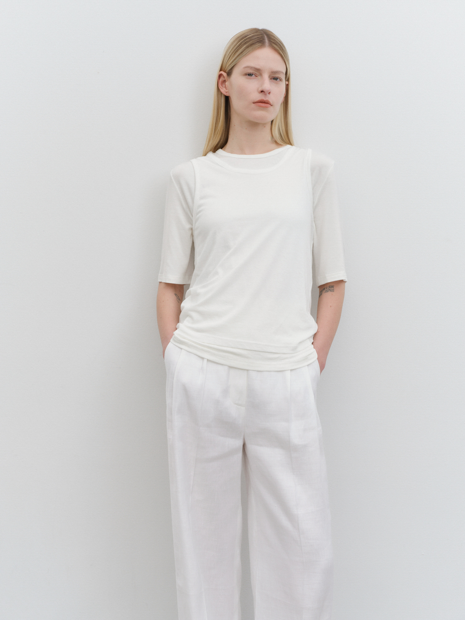 - 늘어짐 방지를 위한 넥라인 이중박음질 처리