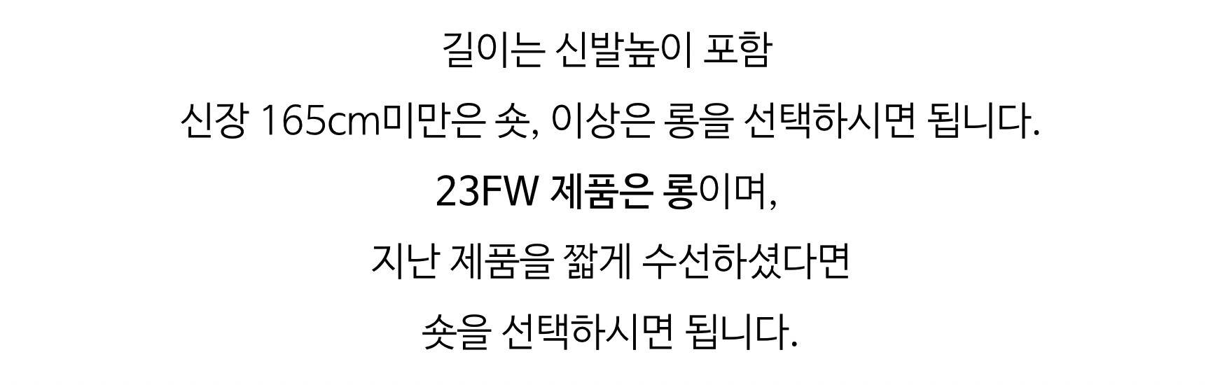 : 허리 36/밑위 35 / 엉덩이 49/ 총장 102 (숏) / 총장 107 (롱)