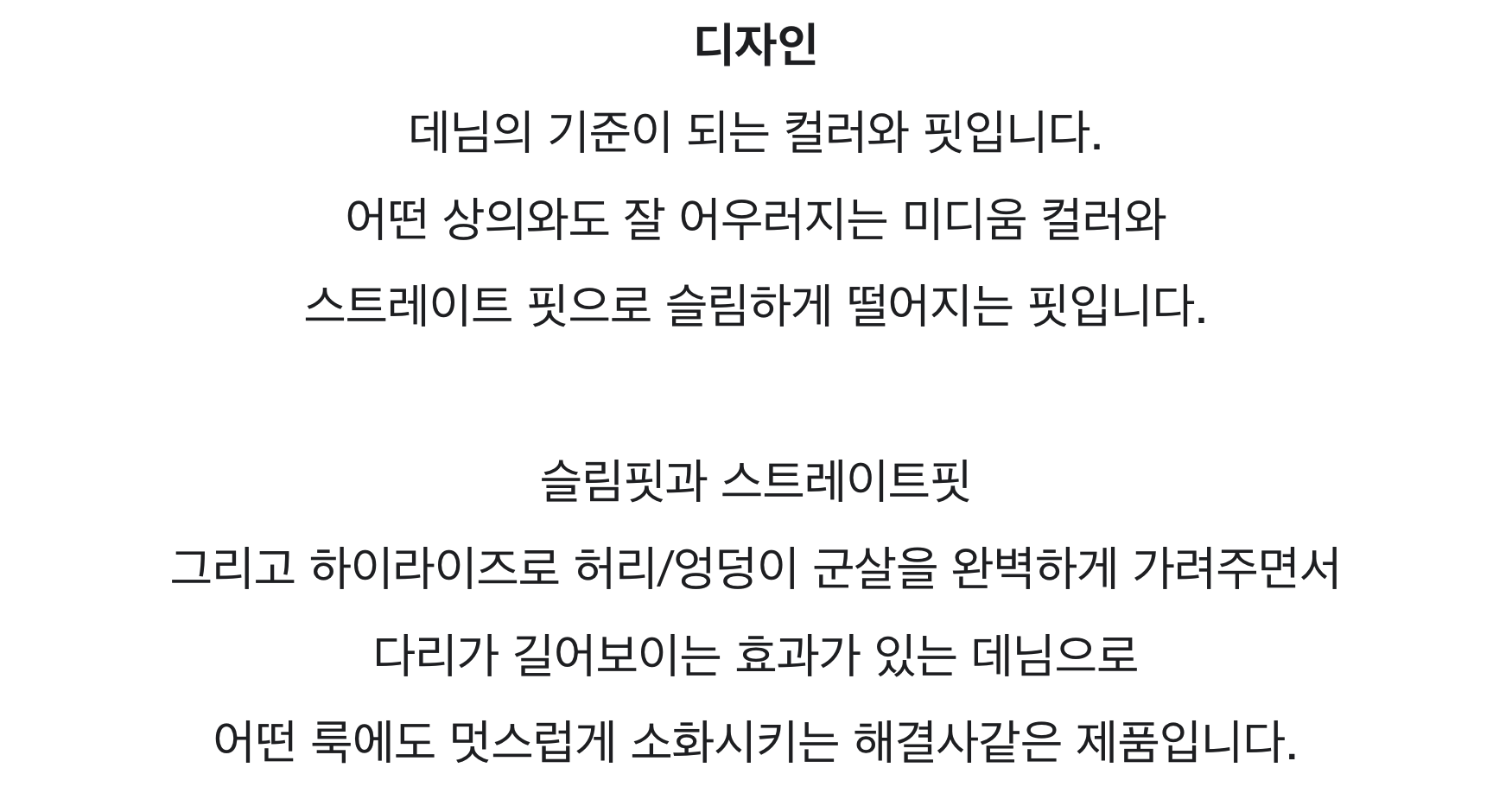S(24-25)_허리 34/ 총장 108/ 엉덩이 48/ 허벅지 29/ 종아리 19.5
