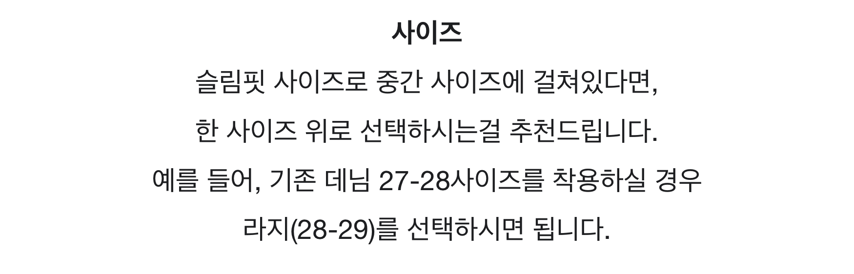 L(28-29)_허리 37/ 총장 110/ 엉덩이 50/ 허벅지 31/ 종아리 21.5