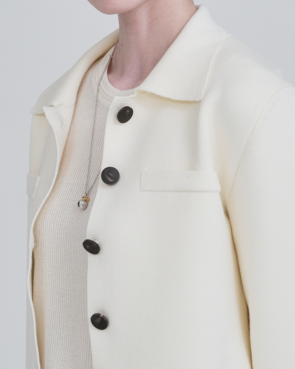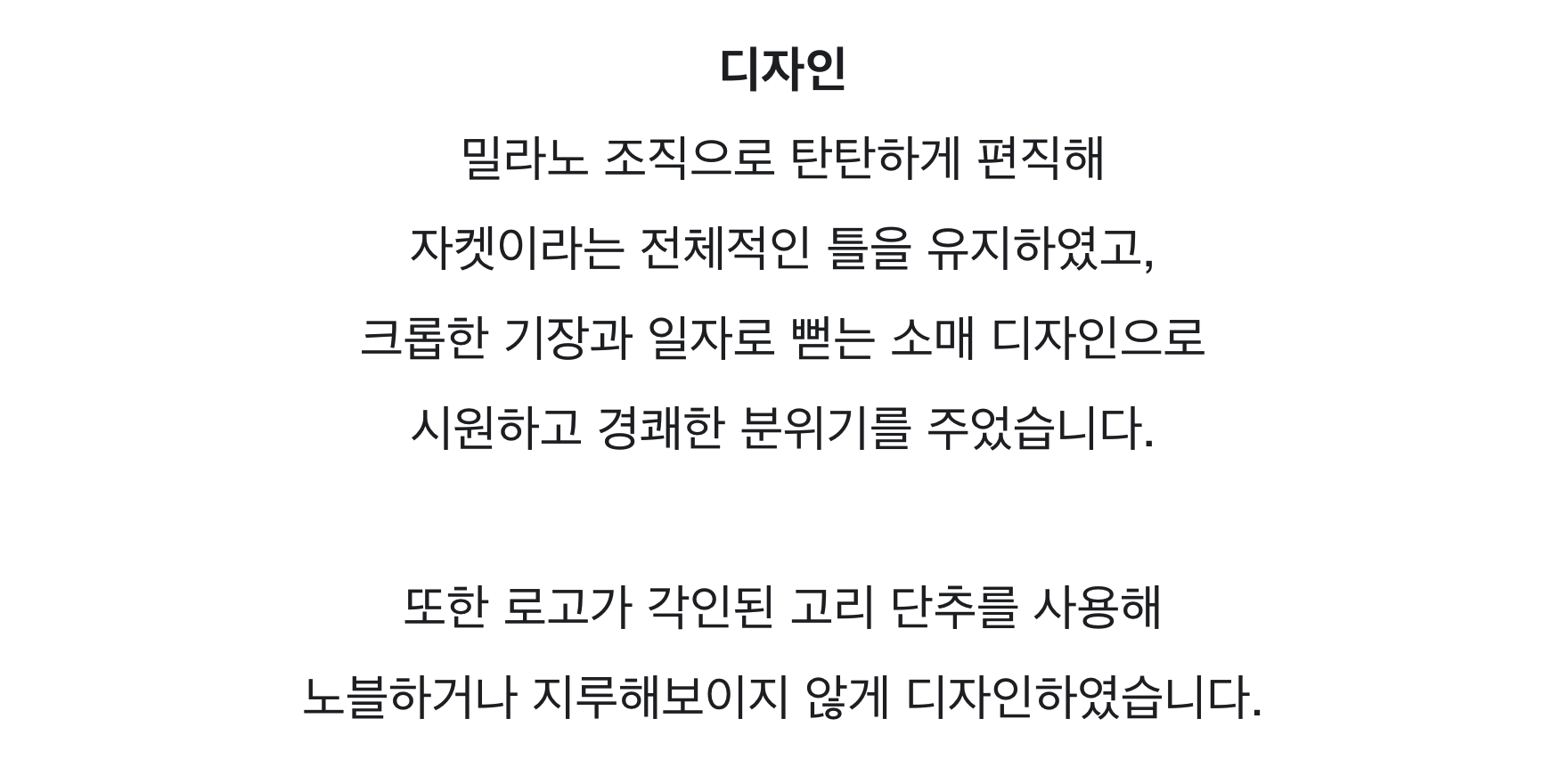 -밀라노 조직으로 아우터 형식의 단단한 니트 원단을 구현