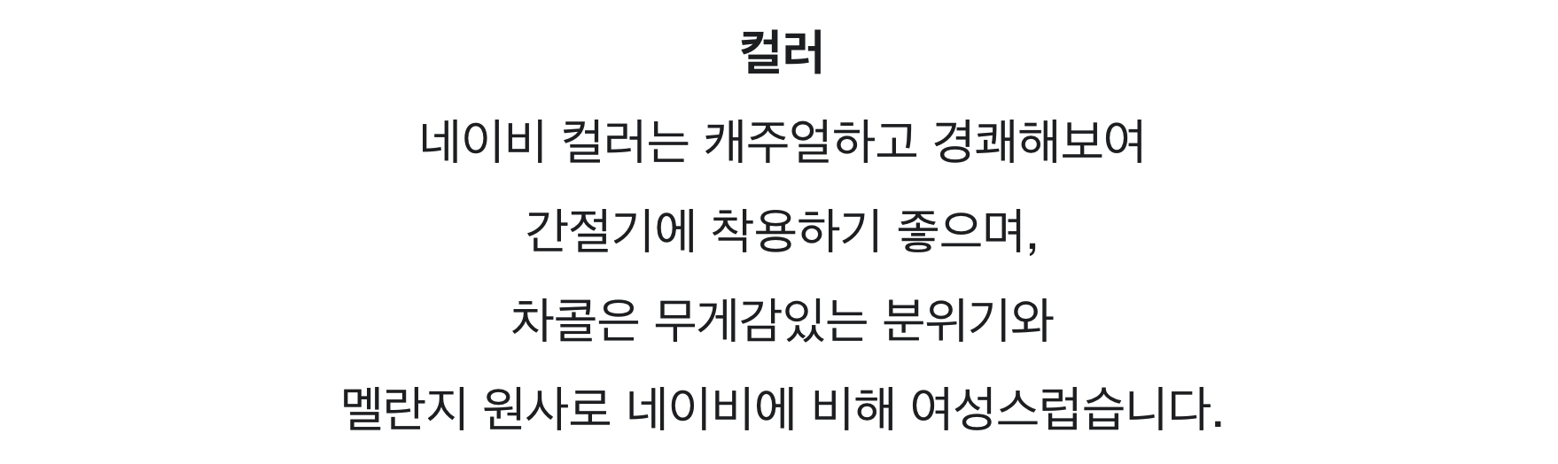 - 미세한 올트임, 멜란지컬러의 패턴차이, 작은 잡사, 고지한 허용범위 내 사이즈차이, 주관적인 기준에 의한 사유 등은 불량 사유에 해당 되지 않습니다.