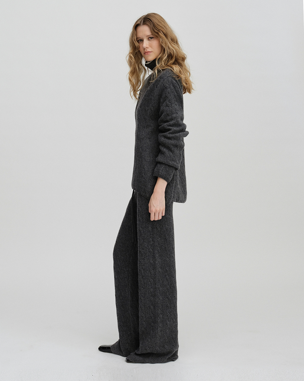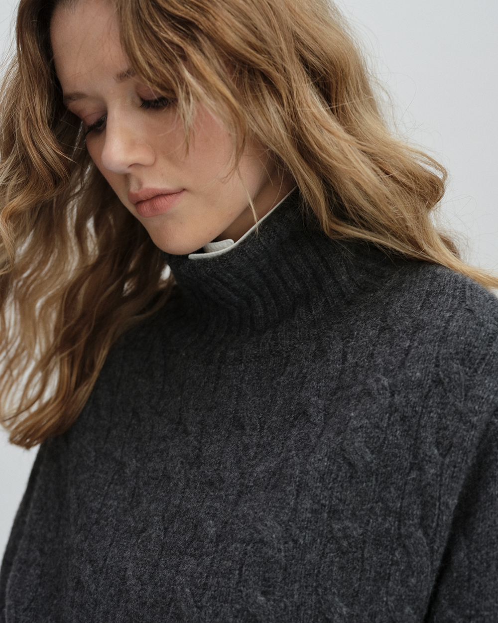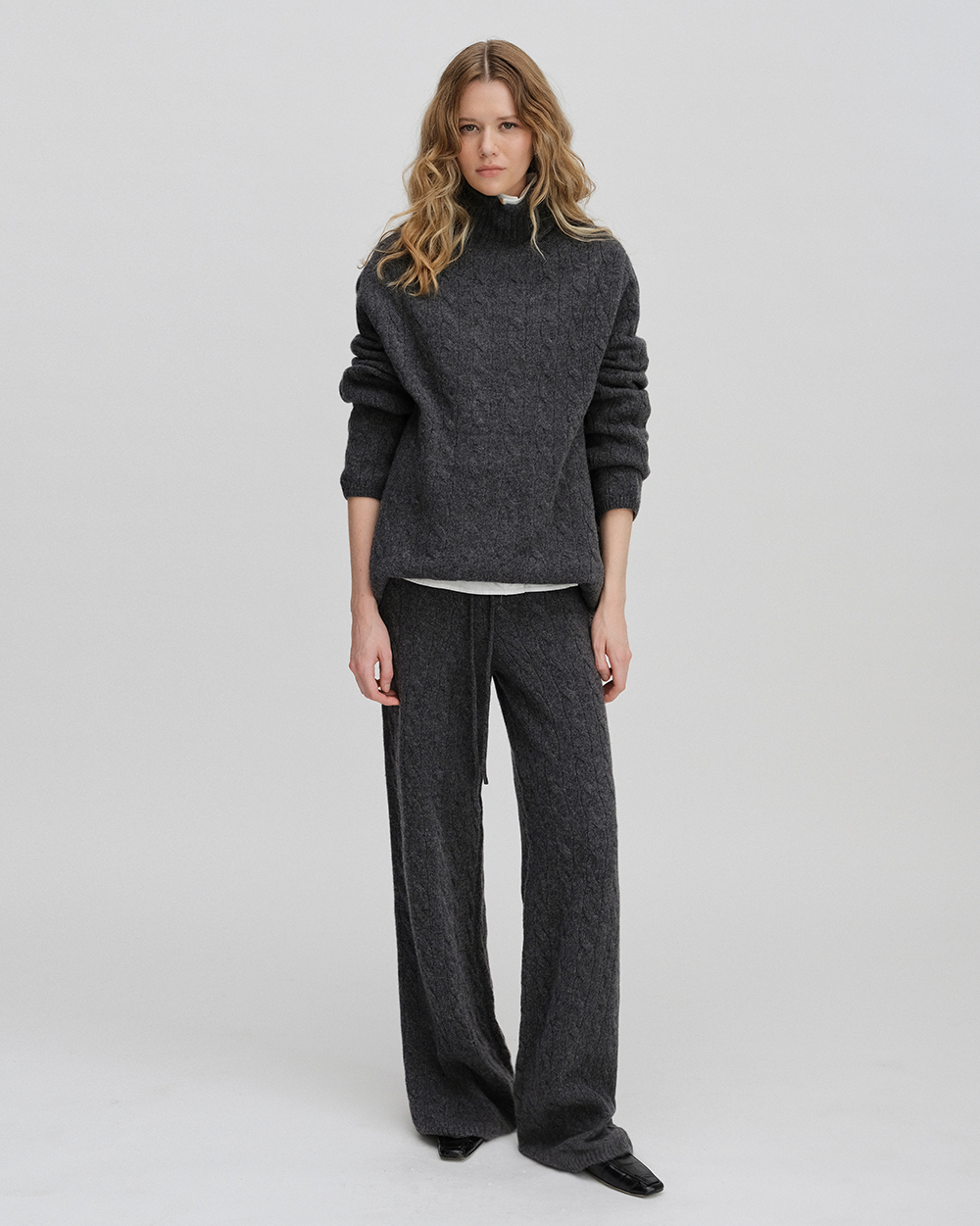 -스웨터 : 터틀넥, 언발란스기장, 드롭숄더