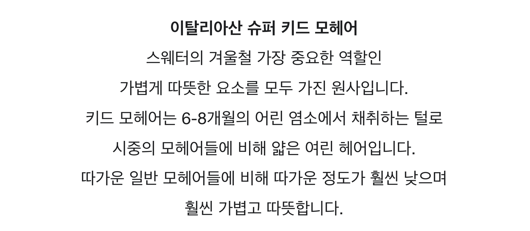 -이탈리아 원사 50% Super Kid Mohair, 32% Poly, 18% Lana