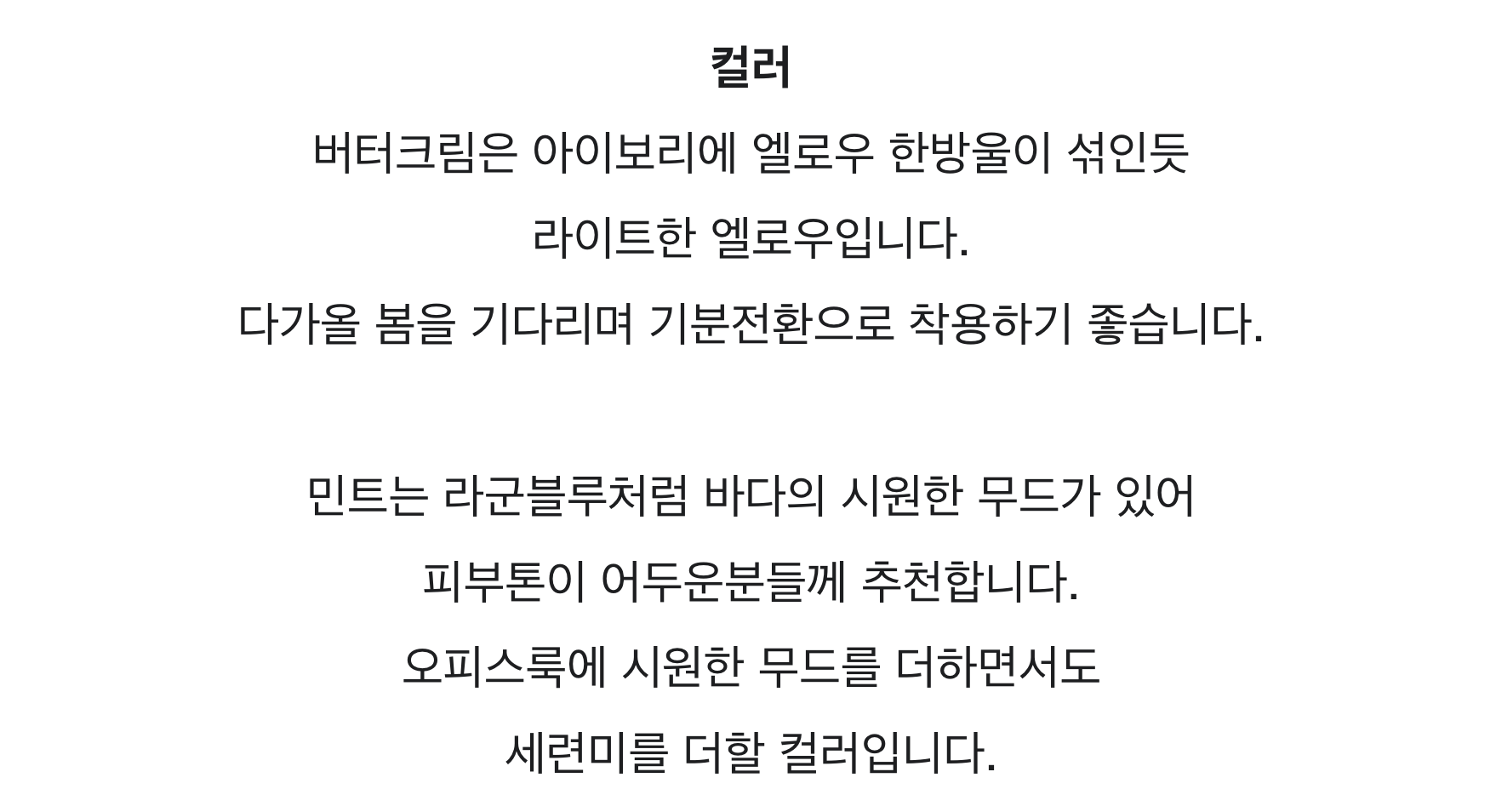 - 미세한 올트임, 멜란지컬러의 패턴차이, 작은 잡사, 고지한 허용범위 내 사이즈차이, 주관적인 기준에 의한 사유 등은 불량 사유에 해당 되지 않습니다.