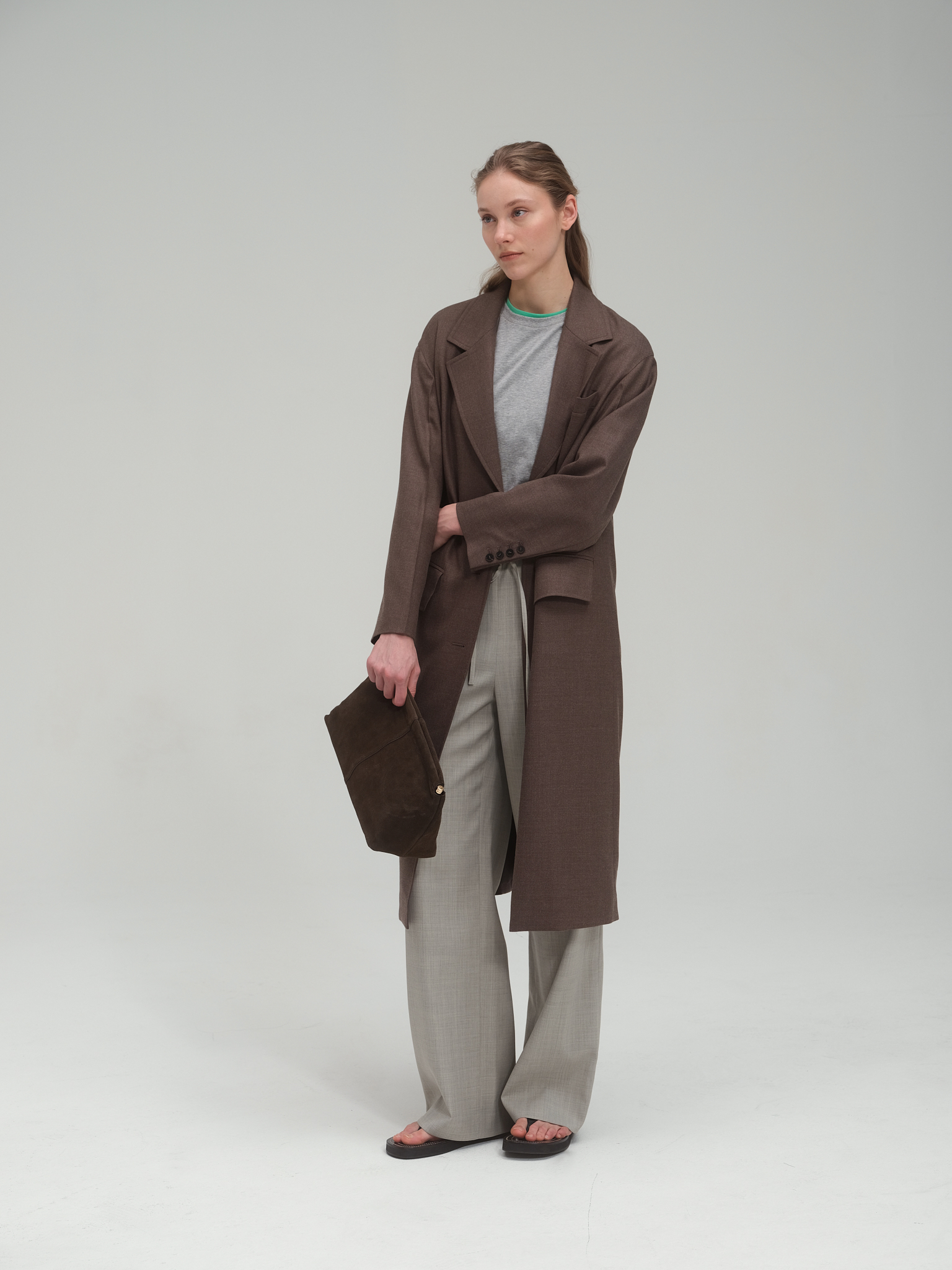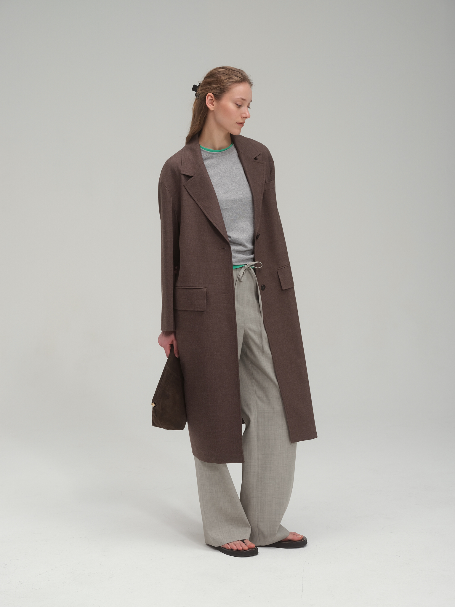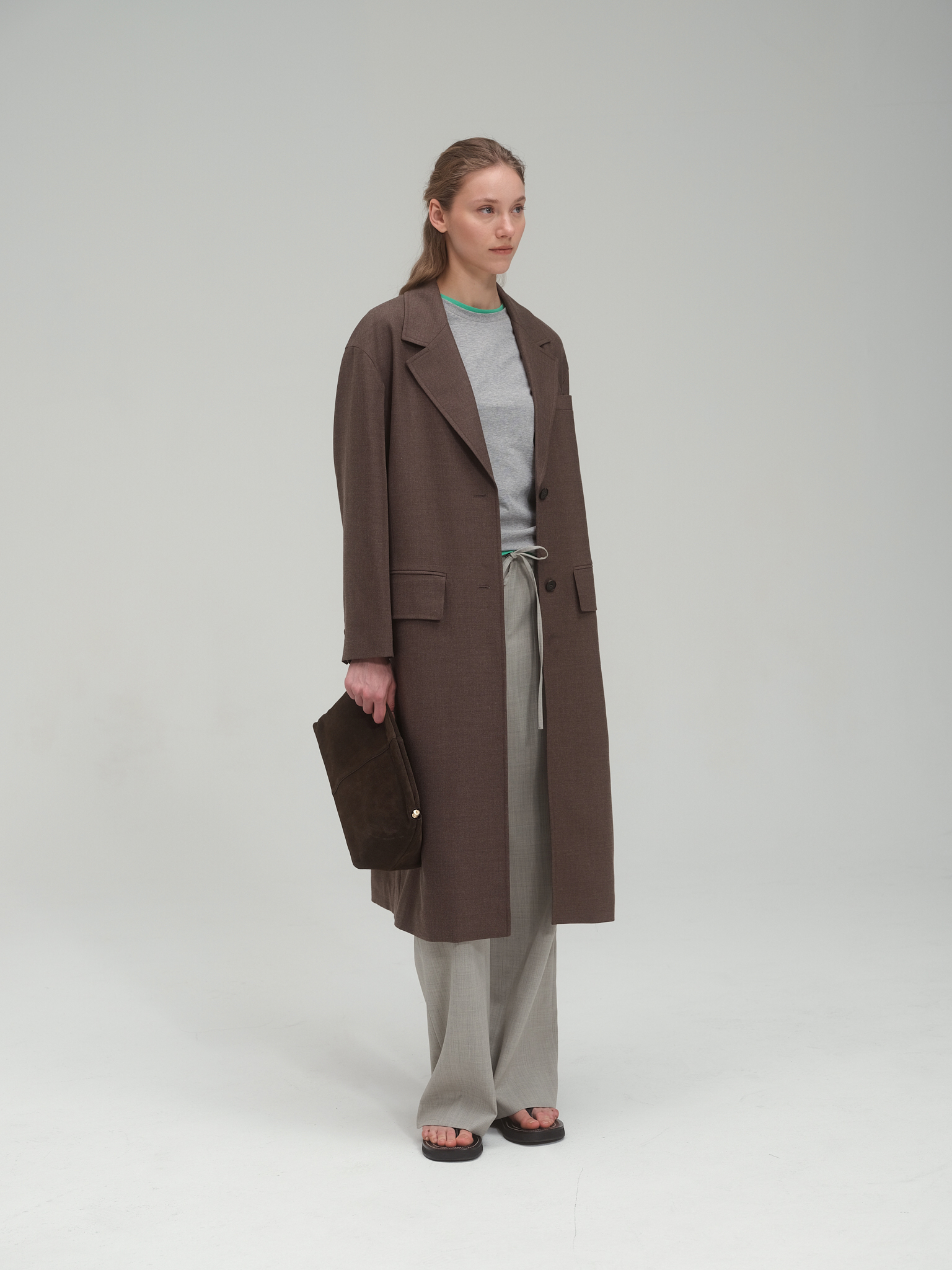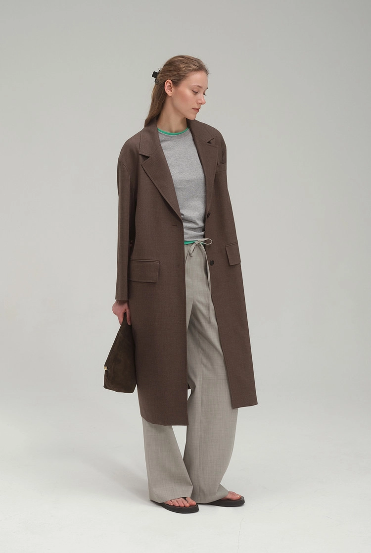 Light wool blend trench_Brown Plain